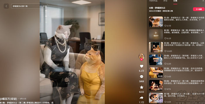 另一方面,尽管创作过程可能会因为有AI的加持与以往不同,但在具体的呈现方式上,无论AI加持的真人短剧、还是动漫短剧,对用户而言都并不新鲜。而诸如“猫咪霸总”这样内容,无论在题材、还是在画面表现力上,都具有更鲜明的AI特征。再加上萌宠的亲和形象,相比其他类型的AI短剧,也就更容易获得用户更高的宽容度。