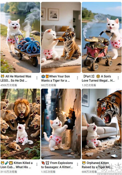 以抖音为例,《胖橘复仇记》共12集,目前的累计播放量超过3600万次。而在海外市场,这类内容更是大受欢迎。例如YouTube博主SuperCatPapa自今年4月起开始连载以白猫为主角的AI短剧,目前已收获超过200万订阅,多个视频播放量达千万级,最高播放量更是突破了1.5亿次。
